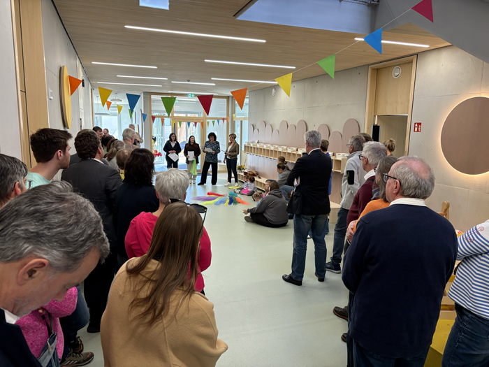 Vom Oberbürgermeister der Stadt Bietigheim-Bissingen, Herrn Jürgen Kessing, wurden wir persönlich eingeladen, an der Eröffnung des Kindergartens „Halli Galli“ am 12.03.2026 teilzunehmen. In diesem Objekt, das zusätzlich 20 Wohneinheiten umfasst, haben wir unsere afm Spanplattenwand sowie die afm Holzprofilwand im Keller montiert.